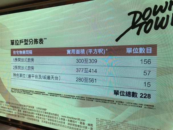 新地代理助理總經理唐錦江稱,項目共提供228伙,一房佔156伙,實用面積300至309方呎,兩房佔57伙,面積377至414方呎,特色戶佔15伙,面積280至561方呎。