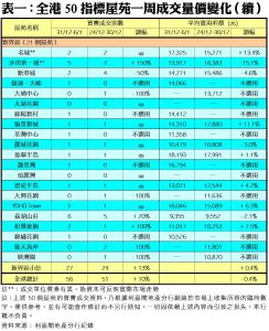 至於,九龍區21個指標屋苑上周僅錄17宗交投,按周再減少23%,其中美孚新村只錄得1宗買賣,較前周的5宗急挫80%;而黃埔花園、海濱南岸、淘大花園、麗港城、柏景灣及昇悅居亦各自僅錄1宗成交。另外,在全港50個指標屋苑當中,上周共有18個屋苑錄得「零成交」,與前周的數量相同,當中港島區佔2個,而九龍區及新界區則各佔10個及6個(詳見表一)。
