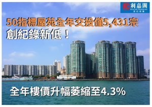 50屋苑十二月呎價14,335元 月跌0.7% 全年樓價僅升4.3% 交投5,431宗創新低