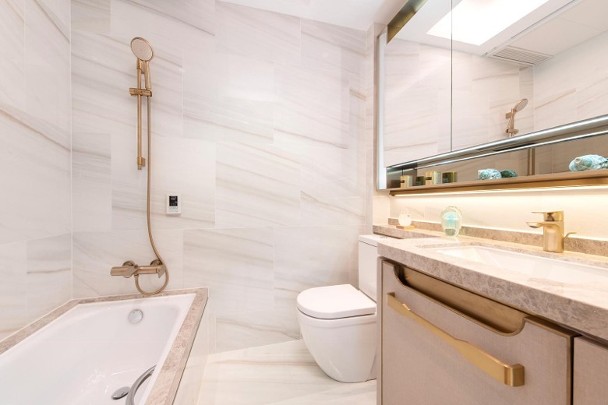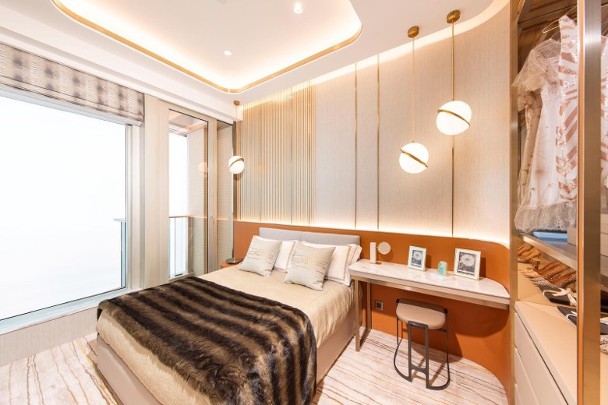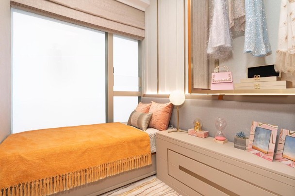 單位無論廳房同向東南,均享開揚內園泳池景致。睡房之間不設主力牆,靈活運用空間。主人套房獨設工作平台,增加天然採光,並預留衣櫃位,方便住戶布置家具。