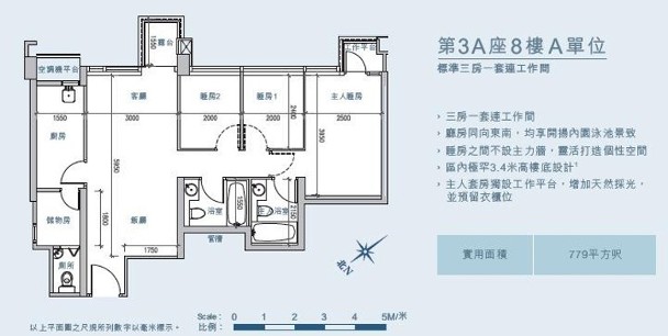 信和置業(00083)旗下大埔白石角逸瓏灣8,安排傳媒參觀全新示範單位,參照第3A座8樓A室搭建,實用面積779方呎,間隔三房一套連工作間。