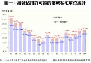 陳海潮指出,2018年首十一個月私宅竣工量暫佔差估署全年預測的18,130伙約86.6%,預期一些大型項目仍有望趕及在2018年底或今年初取得入伙紙,包括日出康城「晉海II」(1,132伙)及「晉海」(1,040伙)、紅磡「環海‧東岸」(1,008伙)、啟德「天寰」(822伙)、北角「維港頌」(378伙)等,再加上其他中小型項目,估計2018年全年落成量最終可達差估署預測數字約1.8萬伙水平。