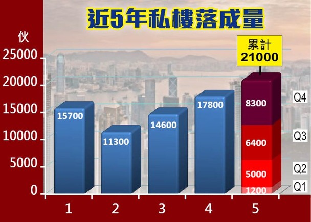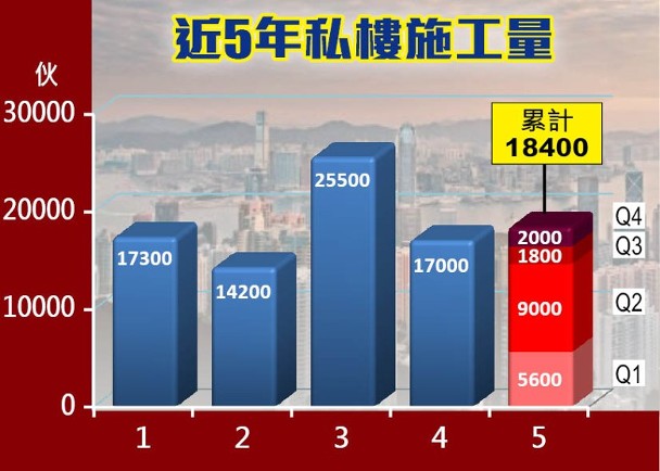 去年累計私人住宅施工量為1.84萬伙,按年增長1,400伙或8.23%。已落成量累計2.1萬伙,按年增長3,200伙或17.97%。