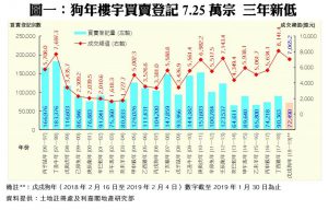 利嘉閣地產研究部主管陳海潮指出,整體樓市在戊戌狗年先升後回,惟臨近年底時,發展商推出新盤時以低價突圍,成功帶動市場氣氛,料踏入豬年後,整體市況經歷前兩季整固後,下半年若無進一步利淡因素下,可望反覆回升,紓緩年初跌勢,而樓價更有可能率先輕微反彈。綜合土地註冊處最新數據所得,截至今年1月30日為止,戊戌狗年(2018年2月16日至2019年2月4日)全港暫錄72,490宗樓宇買賣登記,物業成交總值約7,065億元,預測狗年全年登記量值最終可達73,000宗及7,100億元,料將較丁酉雞年(2017年1月28日至2018年2月15日)的90,363宗及8,141億元分別跌19%及13%,按年登記量料創近3年低位,而登記金額則穩守在近6年的次高水平。