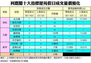 《利嘉閣十大指標屋苑假日二手實況》 農曆新年後首周末 買家業主未回歸 十大屋苑周末錄5宗買賣 按周下滑29%