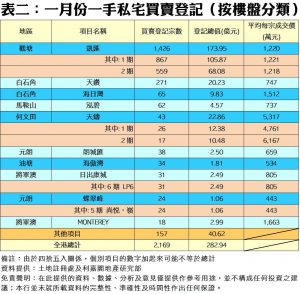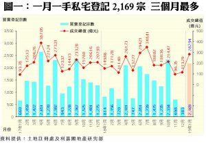 一手私宅買賣上月激增4.7倍至2,169宗 農曆新年休戰 本月登記量料回軟三成