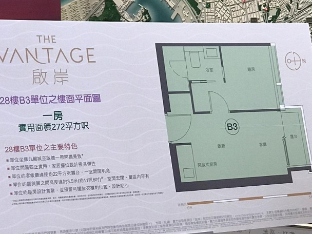 該盤提供551伙,面積170至425方呎不等,所有單位附送衣櫃。今日(19日)率先披露一及兩房圖則,其中28樓B3室1房戶,面積272方呎,連接面積22方呎露台。而28樓A7室兩房戶,面積424方呎。上述兩伙廚人房均以開放式設計。