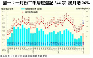 市場氣氛喘穩 資金積極撈底入市 一月份二手居屋登記344宗 創近半年新高