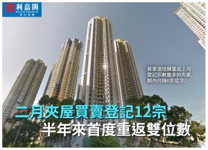 樓市氣氛熾熱 用家入市步伐加快 二月份夾屋買賣登記12宗 七個月最多