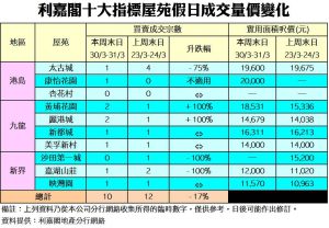 《利嘉閣十大指標屋苑假日二手實況》 新盤吸客力強 二手反價現缺盤 十大屋苑錄10宗買賣 按周回落17%