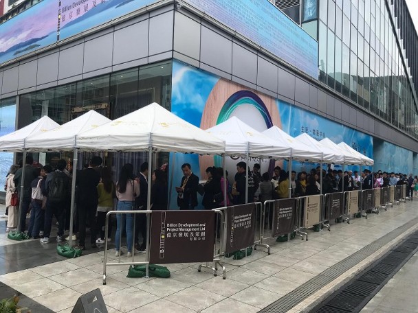 億京發展的大埔海日灣II,昨日(15日)以貼市價首推295伙的價單,今日(16日)下午3時首度開放示範單位予公眾參觀,現場所見,有數十組睇樓客排隊等候參觀,亦有不少地產代理在場撈客,氣氛不俗。