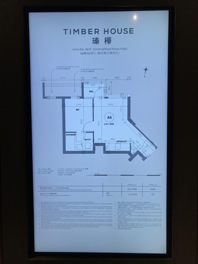 至於兩房單位根據18樓A1室打造,實用面積526方呎,露台面積22方呎,單位設有儲物房。