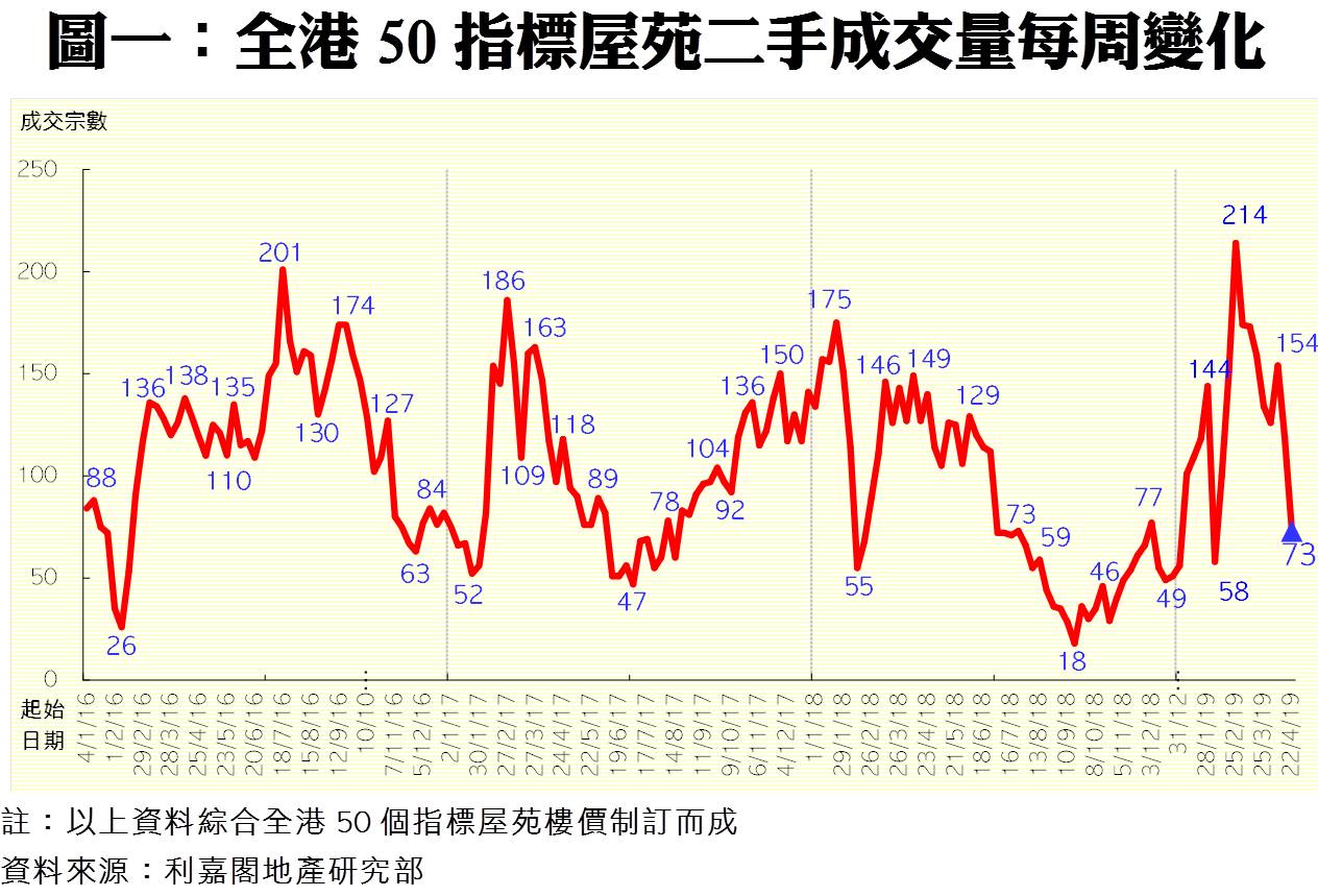 《利嘉閣十大指標屋苑假日二手實況》 新盤成焦點 周末二手成交創今年新低 十大屋苑周末錄4宗買賣 按周下跌43% 研究報告 2019-04-29 by Chan Derek · Published 2019-04-29