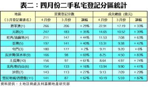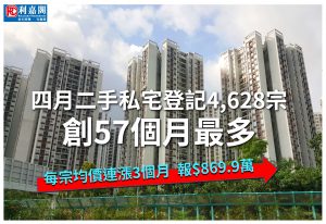 上月二手私宅登記4,628宗 4連升 57月高 每宗均價連漲3個月 報869.9萬元