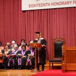 場內,台上是大學校董會主席(榮譽院士銜的頒授者)、大學校長、大學校董及大學管理高層;台下,嘉賓滿座。