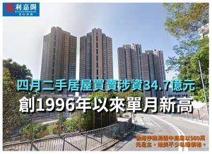 利嘉閣地產研究部主管陳海潮表示,受早前中美有機會達成貿易協議利好帶動,股票市場持續向好,同時樓價低位「報復式」反彈,上車客及白居二買家蜂擁入市,刺激四月份二手居屋交投創逾五年半最多。根據土地註冊處最新數據顯示,四月份全港錄得669宗居屋二手買賣登記(包括第二市場及自由市場),較三月份460宗按月大漲45%,創自2013年七月後的69個月(逾五年半)新高;而期內成交總值共錄約34.7億元,較三月份的23.3億元,按月急飆49%,更創下有紀錄以來最多。