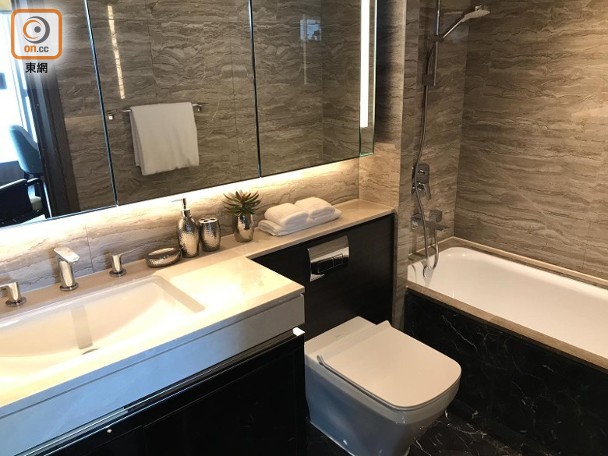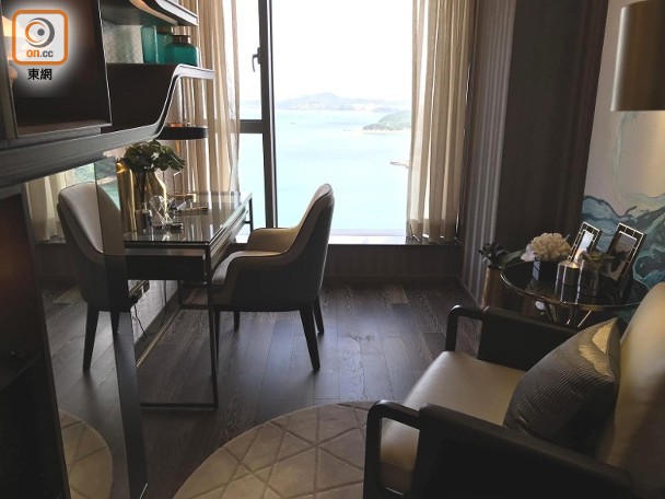 發展商亦安排傳媒參觀8座16樓B室連裝修示範單位,實用面積1,379方呎,已改裝成兩房連套房間隔,大廳面積約330方呎。周四隨即開放予公眾參觀。