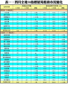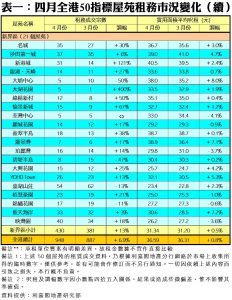 租金連升三個月 旺季來臨升勢續有支持 四月50屋苑平均呎租36.59元 再升0.8%