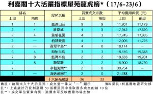 陳大偉指出,市場預期美國下半年將會調降利率,本港息口可望維持在超低水平,有利物業買賣投資。另外,近日各區新盤登場,亦有助推升市場氣氛,令原本持觀望態度的購買力逐漸釋放,料未來一兩周十大活躍指標屋苑成交量將稍為增加。