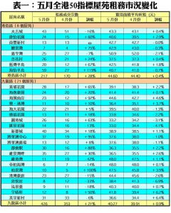 五月份50指標屋苑租賃交投錄得1,106宗,較四月份的960宗增加15.2%,為自去年八月以來的十個月最多。上月50指標屋苑買賣成交量持續急跌,而租賃交投量則背馳上升,令上月50指標屋苑租賃佔整體成交比例急升至逾68%,按月再升約9個百分點,創下近五個月高位。