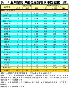 五月50屋苑平均呎租37.04元 升1.3% 租務量價齊升 暑期旺季至 漲幅料續擴