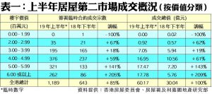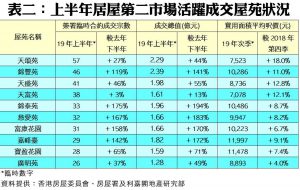 利嘉閣地產研究部主管陳海潮表示,年初中美貿易關係一度好轉,同時本港樓價調整過後重展升浪,白居二等用家全面入市,刺激上半年居屋第二市場交投急增。根據香港房屋委員會及房屋署網頁最新數據,今年上半年全港共錄1,189宗居屋第二市場買賣個案(按簽署臨時買賣合約的成交為準),較去年下半年的643宗急增85%,創近三年最多;同期物業成交總值約60.17億元,創下有紀錄以來最高,而較去年下半年的30.04億元,按半年急漲近1倍。