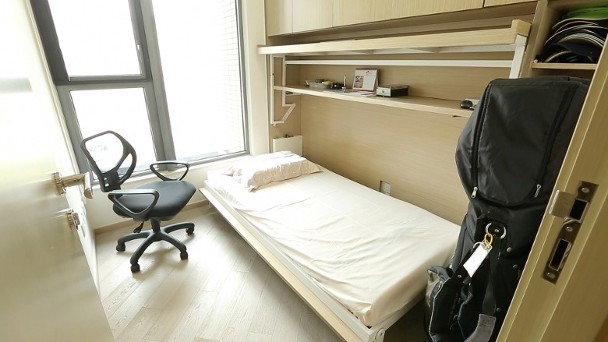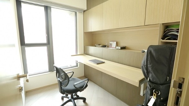 書房的書枱其實是變形傢俬,可變身做單人床,招呼客人留宿。