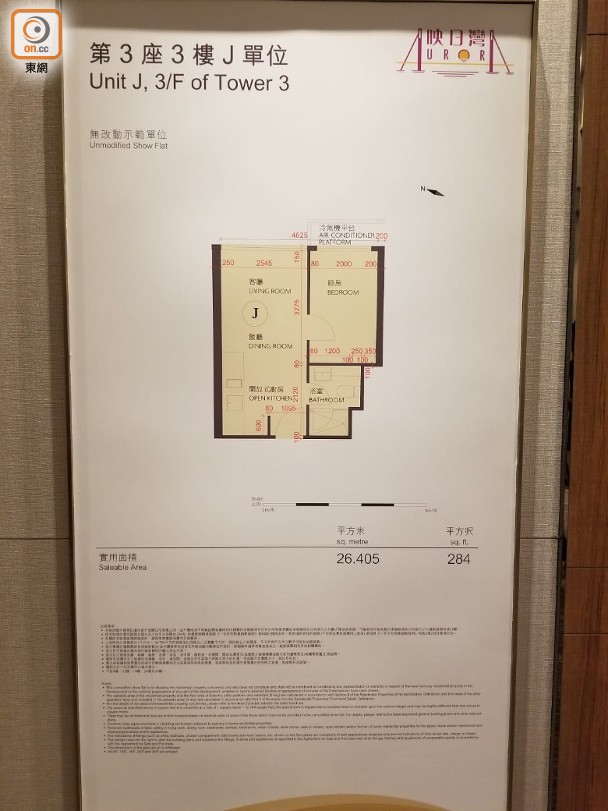 其中參照3座3樓J室搭建,實用面積284方呎,一房間隔。