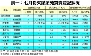 政經環境影響 交投創近4個月低 七月份夾屋買賣登記10宗 按月跌9%