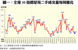 利嘉閣地產董事陳大偉表示,受各區的社會運動持續所影響,買家入市心態審慎觀望,二手屋苑睇樓活動疲弱,加上只有個別業主願意調整叫價,市場交投淡靜。綜合利嘉閣地產分行數據所得,全港50個指標屋苑於上周(12/8—18/8)累錄39宗買賣個案,較前周(5/8—11/8)的38宗微增1宗或3%,仍處於低位徘徊,並創近四十二周次低。