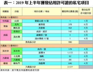 陳海潮指出,今年上半年的私人住宅落成單位只有5,734個,僅佔差估署全年預測的20,420伙約28%,整體竣工進度稍為落後於預期,但預計下半年仍有不少焦點項目可望竣工,當中包括大埔「雲匯」(1,444伙)、屯門「上源」(1,154伙)、大埔「嘉熙」(1,122伙)、元朗「朗城滙」(720伙)及西營盤「翰林峰」(645伙)等,再加上其他中小型項目,估計2019年全年落成量仍有望接近兩萬伙水平。