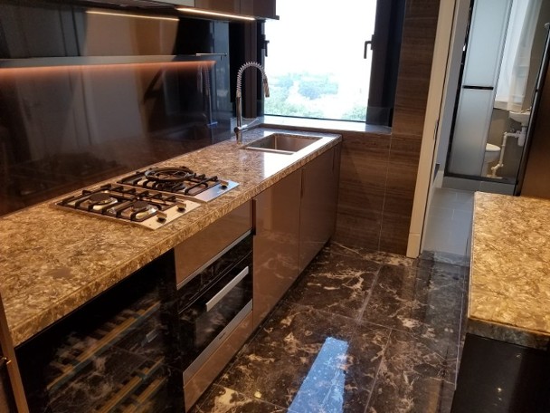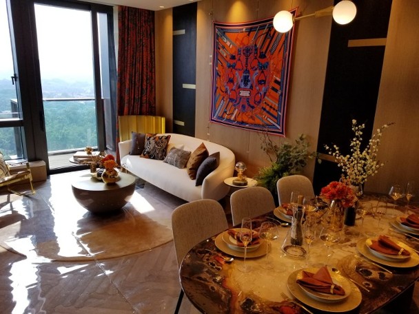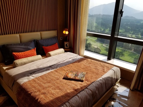 該盤同時開放兩個示範單位予傳媒參觀,其中第9座25樓A室連裝修單位,屬三房雙套戶型,實用面積967方呎,外望開揚高爾夫球場景觀。至於另一間同層B室交樓標準單位,實用面積960方呎,同樣享有開揚景觀。