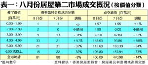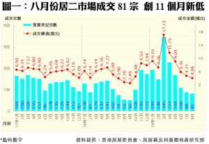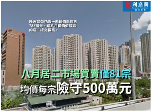 八月居二市場買賣僅81宗 連跌5個月 平均每宗售價急挫 按月大跌6.3%