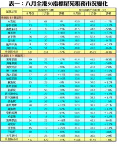八月50屋苑平均呎租37.46元 月跌1.2% 旺季尾聲 租金繼早前連升六個月後首跌