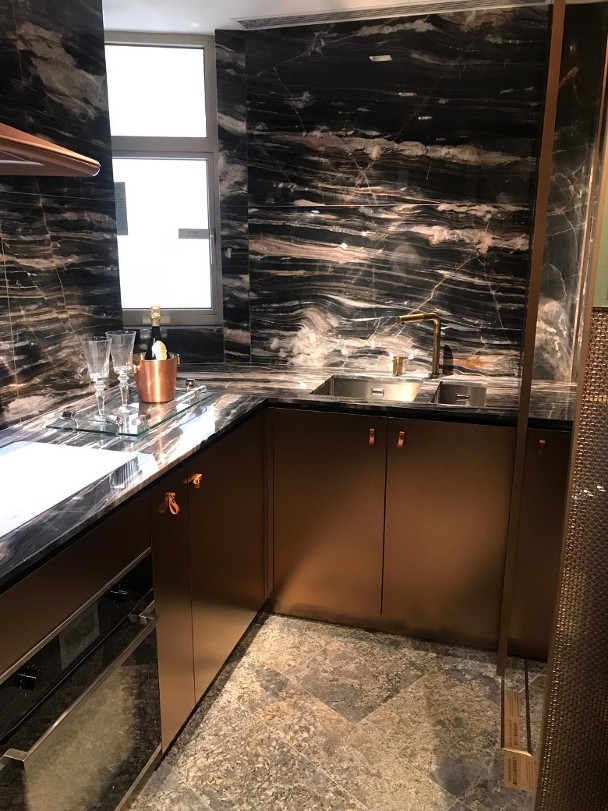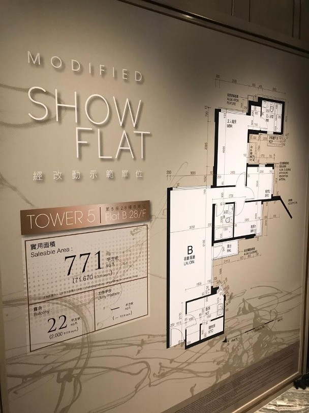 01113)旗下長沙灣愛海頌,首度開放原則三房裝修示範單位予傳媒參觀,參照第5座28樓B室搭建,實用面積771方呎,大廳設有面積22方呎露台。主人房連接套廁,廚房內設有儲物房。