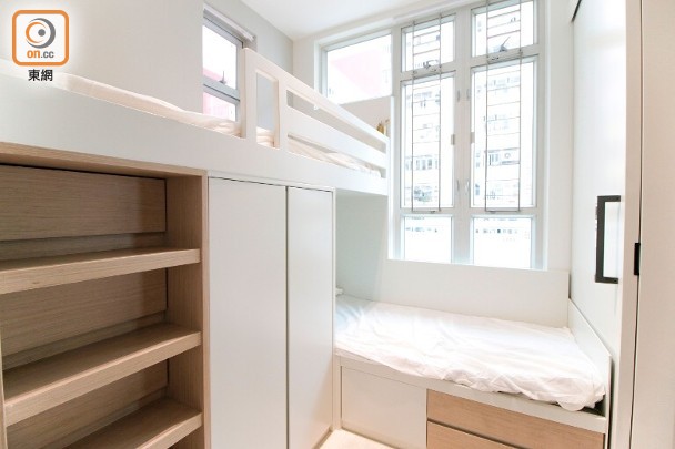 這是媽媽和婆婆的睡房,實用面積約35方呎,採丁字床設計。