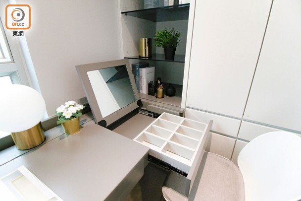 衣帽間設有一張5呎書枱,而書枱亦可變身為梳妝枱。