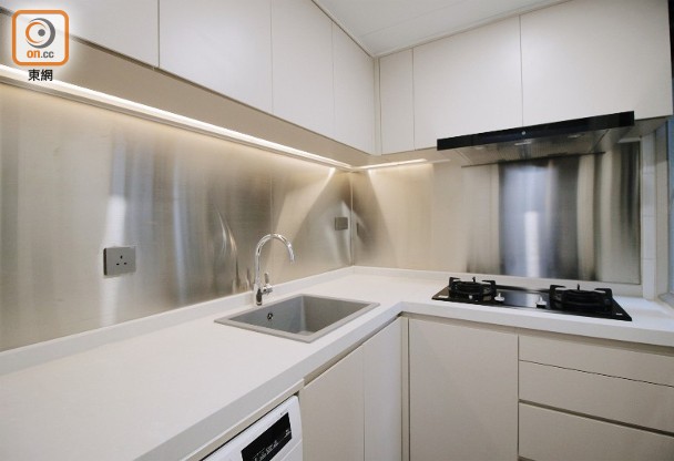 原則廚房有一個洗滌盆和矮枱,現在改為L型工作枱面,和增設兩層大櫃,善用每呎空間。