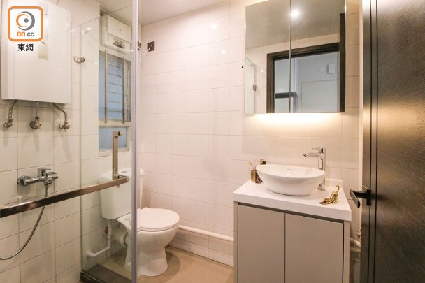 浴室保留原則的交樓標準,並加設假天花收藏喉管,看起來更加美觀。