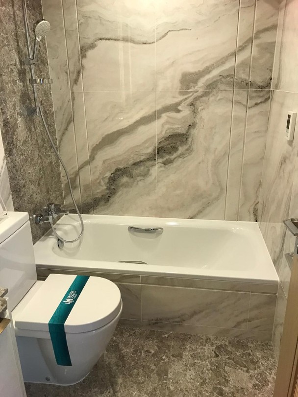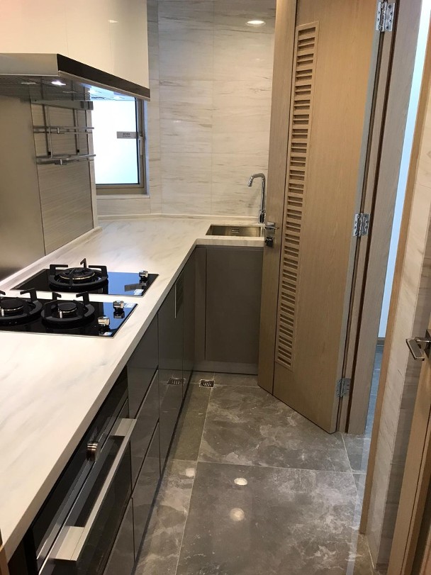發展商安排傳媒參觀三房交樓標準示範單位,參照5座28樓B室,實用面積771方呎。