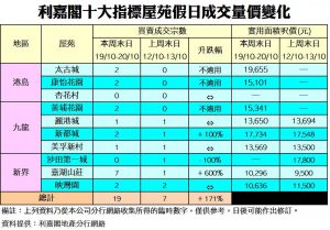 《利嘉閣十大指標屋苑假日二手實況》 施政報告放寬按保 二手成交反彈急升 十大屋苑周末錄19宗買賣 按周升1.7倍