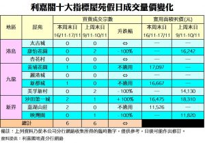《利嘉閣十大指標屋苑假日二手實況》 市況未見突破 一二手市場失焦點 十大屋苑周末錄6宗買賣 與上周相同