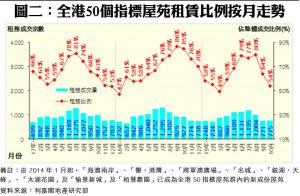 十月份50指標屋苑租賃交投共錄775宗,較九月份的771宗微增不足1%,為近八個月以來次低。上月50指標屋苑買賣交投量明顯回升,而同期的租賃成交量走勢則較為平穩,令上月50指標屋苑租賃佔整體成交比例降至不足54%,按月大減約9.9個百分點,為近七個月最低。