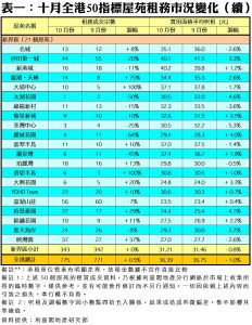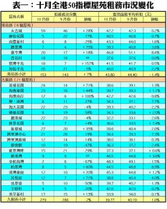 十月50屋苑平均呎租36.39元 再跌1.0% 創七個月新低 首十個月累積升幅僅1.5%