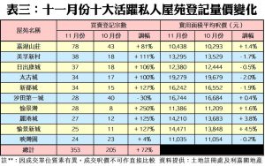 上月二手私宅買賣3,339宗 半年最多 市況反覆 12月登記量料回落四成
