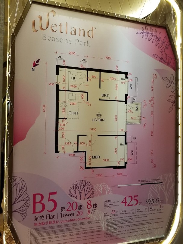 至於另外一個為第20座8樓B5室交樓標準單位,實用面積425方呎,採用兩房間隔。