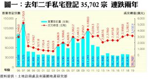 利嘉閣地產研究部主管陳海潮指出,去年二手私宅市場續受樓市辣招困擾而令買賣登記量連跌兩年,惟今年料可受惠放寬按揭,可望挑戰六年新高。綜合土地註冊處數據所得,2019年全港共錄35,702宗二手私宅買賣登記,按年跌約8%,維持在過去5年來不足4萬伙的低水平窄幅徘徊;涉及成交總值3,132.09億元,較2018年回落5%,惟仍屬24年歷史上的第5高。2019年每宗二手私宅登記平均售價約877.29萬元,除較2018年升近4%外,亦是連續第五年迭創歷史新高。