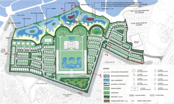申請人指出,新方案依照已獲許可的發展參數作出修訂,沒有影響發展密度及濕地修復區。