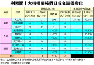 《利嘉閣十大指標屋苑假日二手實況》 新春連假 新型肺炎 夾擊二手交投 四天假期十大屋苑買賣急挫 僅累錄2宗