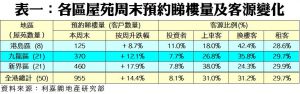 至於港島區方面,8個指標屋苑於周末暫錄125組客戶預約睇樓,按周上升8.7%。利嘉閣地產逸樺園一行高級經理吳玉蘭表示,今個月康怡花園暫錄得11宗買賣,料很大機會超越上月全月的12宗成交。吳玉蘭指,近兩個星期屋苑交投量急增,主要是因為不少買家見市場陸續出現減價成交,態度轉趨審慎樂觀,配合區內業主提供5%至8%的議價空間,資金紛紛重投樓市,周末康怡花園預約睇樓量按周上升。